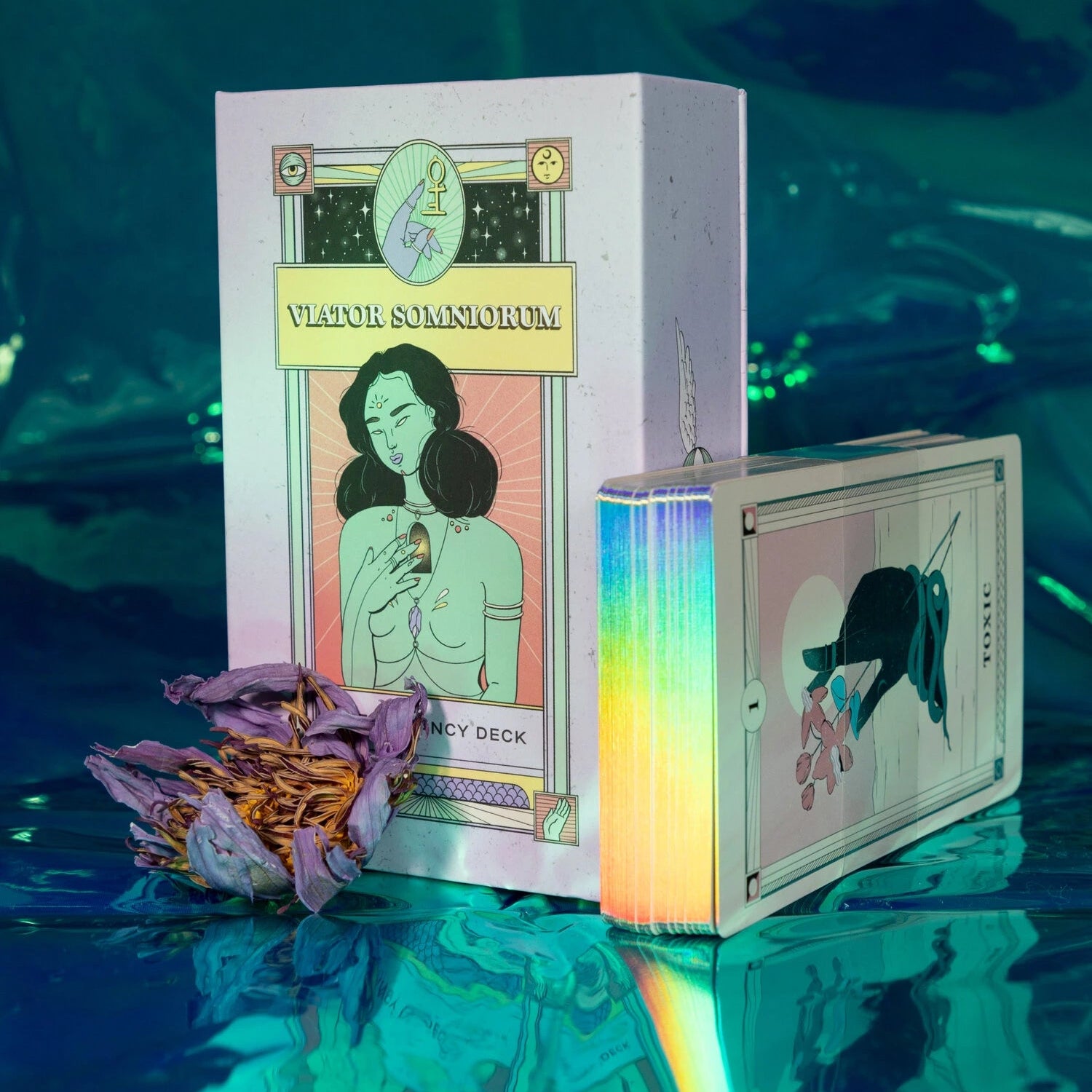 This otherworldly and international 52 card oracle deck comes with a 61 page guidebook. Viator Somniorum is the Latin word for Dream Traveller.