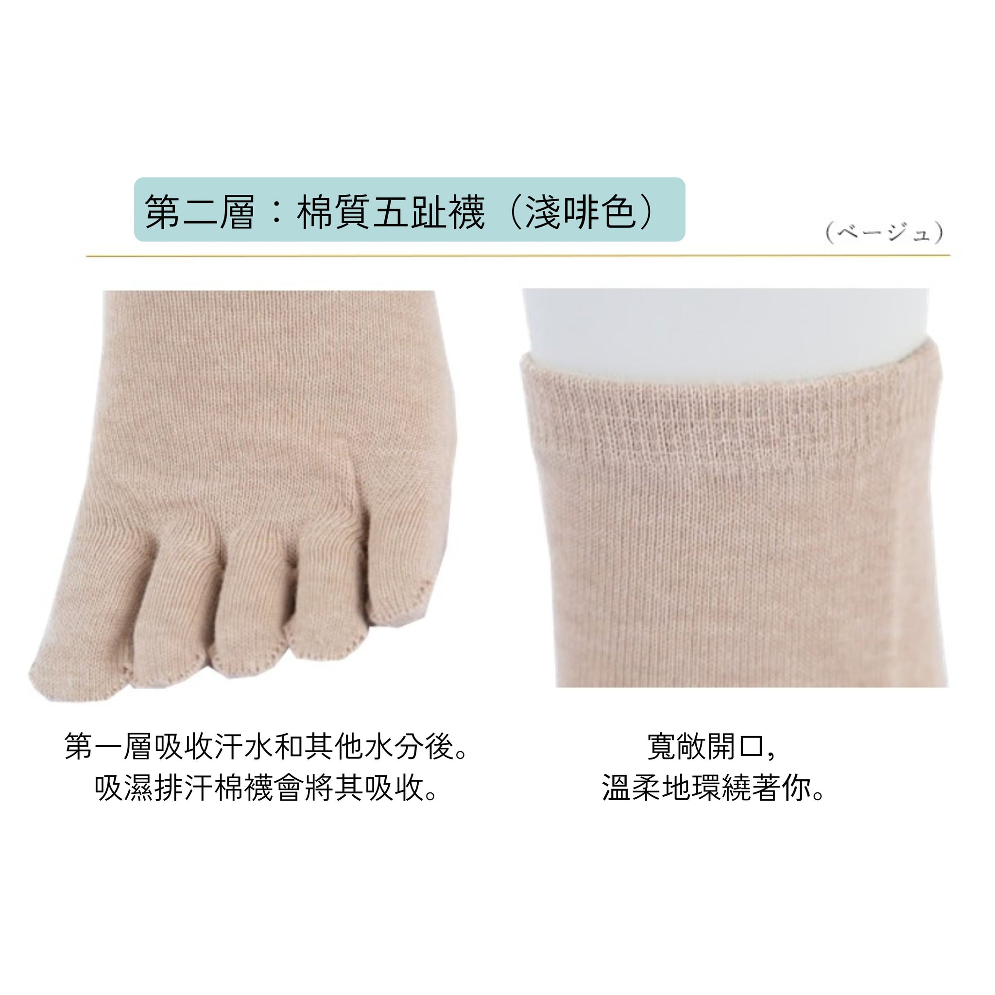 第三層 圓頭襪 米白色 蠶絲 - 透氣通爽