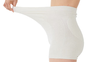 使用特別編織技術,無縫接合,穿著舒適,即使睡眠時也可穿著;腹部和臀部區域加入 蓬鬆絨毛結構,提供額外保暖,達到完美「暖宮」、「暖胃」、「暖大腿」效果。伸展性強,孕婦也可使用。