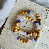 Aromatic Palo Santo Bracelet with Amethyst, Aquamarine & Rose Quartz 香香聖木三重彩手串