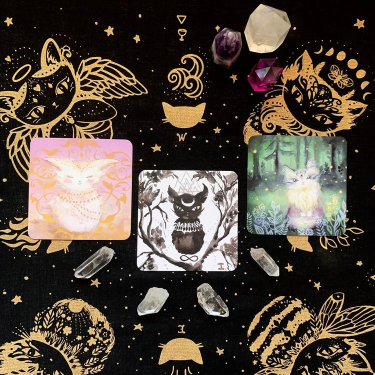 Add a generous dash of golden cosmic kitty magic to your tarot and oracle card readings, your rituals, and your sacred space.