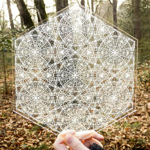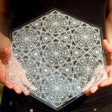 Crystal Grid - Angelic Flower of Life 上印製的,是我們在生命之花的基礎上發展出來的神聖幾何圖案,與我們能量最強勁的另一件作品 Angelic Star 相同。