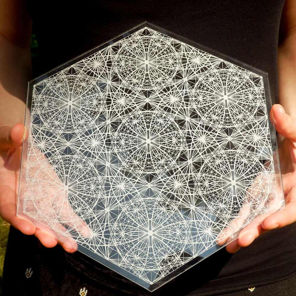除了擺放水晶陣,你也可以用這板子活化水的能量,以及許多許多其他用途。這個神聖幾何的能量非常強大。