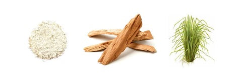 Ingredients: Cocos nucifera (Coconut Oil), Maranta arundinacea(Arrow Root) Powder, Manihot esculenta (Tapioca) Starch,Butyrospermum parkii (Shea) Butter, Euphorbia antisyphilitica(Candelilla) Wax, Theobroma Cocoa (Cocoa) Butter, Magnesium Hydroxide, Oryza sativa (Rice Bran) Wax, Baking Soda, Bambusoideae (Bamboo) Extract, Kaolin Clay, Zinc Oxide, Essential oils of Bursera graveolens (Palo Santo), Litsea cubeba (Litsea), Vetiveria Zizanoides (Vetiver), Citrus bergamia (Bergamot).