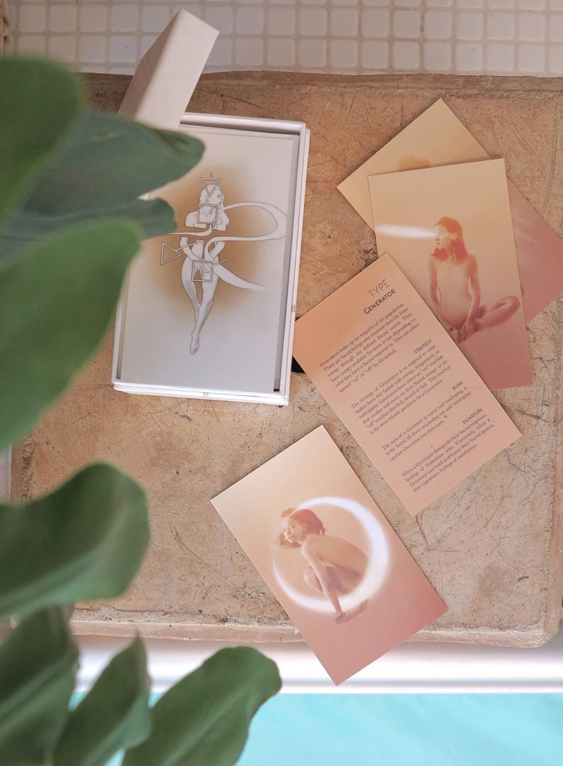 This project began as Brynja's own personal study deck. As she began memorizing the litany of concepts that encompass Human Design she needed a visual aide to remember and solidify those concepts. Over time, personal notes became a deck of cards, and cards became a booklet, and booklet became akin to a visual encyclopedia. These cards are a visual archetypal embodiment of a complex system downloaded in 1987 by Ra Uru Hu. Human Design is an integration of the I Ching, astrology, the Kabbalah, and chakra systems. The Human Design System maps the bioenergetic mechanics of human beings.