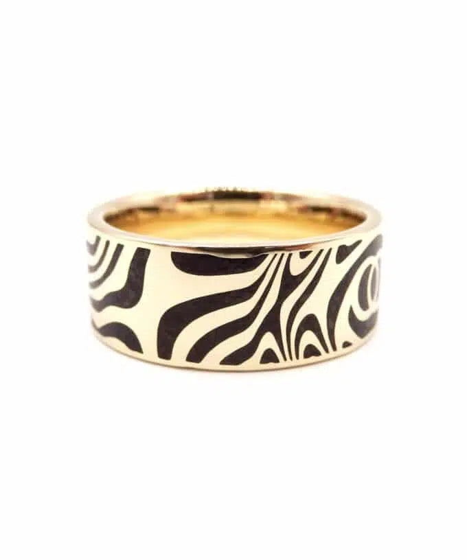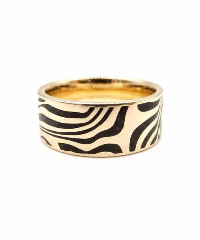 The Twin Soul Wedding ring does not contain the real traditional Mokume Gane. But instead they’re inspired by the organic forms that result from it.